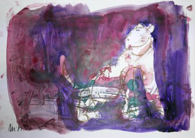Fünf Jahrzehnte ist Armin Mueller-Stahl bildkünstlerisch tätig. In dieser Zeit entstanden viele Malerein und unzählige Arbeiten auf Papier. Seine “biographischen Bildwelten” sind spannende, heitere, zeitweise auch ironische und aktuell politische Auseinandersetzungen mit Gesehenem und Erlebtem. Das genaue Beobachten ist für ihn als Schauspieler, wie als bildender Künstler von großer Bedeutung. Gestik und Mimik verraten ihm viel.